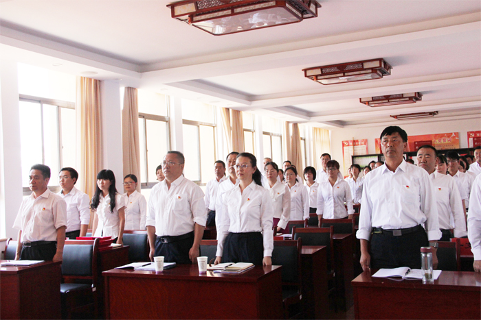 会议在雄壮的《国际歌》声中圆满结束。(来源:组织人事科)