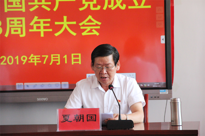会上,学校党委书记夏朝国同志作庆祝大会动员讲话,结合学校工作实际,从回顾初心,牢记使命,在努力奋进中彰显新时代新担当新作为等方面进行分析总结,肯定了学校过去一年取得的优异成绩。他指出,98年来,我们党始终坚守为人民谋幸福的初心,为中华民族谋复兴的神圣使命,为了一个共同的目标,勇于自我牺牲,甘于奉献,披荆斩棘,取得了举世瞩目的辉煌成就,谱写了气壮山河、威武雄壮的壮丽史篇。他强调,新的时代,我们坚信,只有在中国共产党的领导下,坚持以习近平新时代中国特色社会主义思想为指导,深入学习贯彻党的十九大精神,以全面从严治党为主线,以“创新、协调、绿色、开放、共享”五大发展理念为引领,牢固树立“四个意识”,坚定“四个自信”,共产党人要始终“不忘初心,牢记使命”,我们的奋斗目标一定会实现。接着,对下半年的工作作了安排布置,他要求,学校要按照市委、市政府、市教育体育局和学校党委的安排部署,始终坚持党建引领,把政治建设摆在首位,全面落实从严治党要求;切实抓好“不忘初心,牢记使命”主题教育和党风廉政建设两个责任体系;深化党支部五化建设,着力抓好常态化落实;坚持党管人才,着力抓好干部队伍建设;加强作风建设,转变工作作风,切实提高工作效能;坚持正确的用人导向,强化干部担当作为,选优配强学校干部,推动学校各项工作实现高质量跨越式发展。