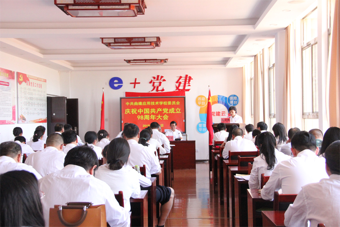 党委书记夏朝国同志带领全体党员重温了入党誓词。学校党委副书记、校长王宗舜同志要求把建党98周年庆祝大会会议精神贯彻落实到各项工作中去,团结一心、开拓创新、扎实工作,为学校美好的明天而不懈努力!