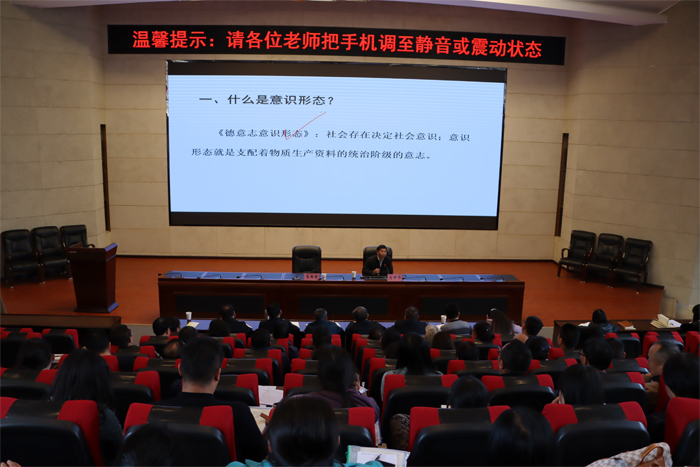 此次培训邀请了中共曲靖市委党校副校长、二级调研员马中华教授作《坚持马克思主义在意识形态领域指导地位》的专题报告。马教授从意识形态的概念、古代、近现代意识形态的演变、21世纪新教文明与东亚文化大博弈、新时代铸就中华文化新辉煌以及意识形态考核要点六个方面深刻解读了意识形态的唯物史观。重点围绕意识形态的极端重要性,阐述了新时代的三个事关、三权建设、五项使命和六种力量。马教授强调,我们要把意识形态作为思想武装、价值引领、舆论导向和文化繁荣的核心要素,做到党委理论中心组学习制度化,社会主义核心价值观教育常态化,不断唱响主旋律弘扬正能量。