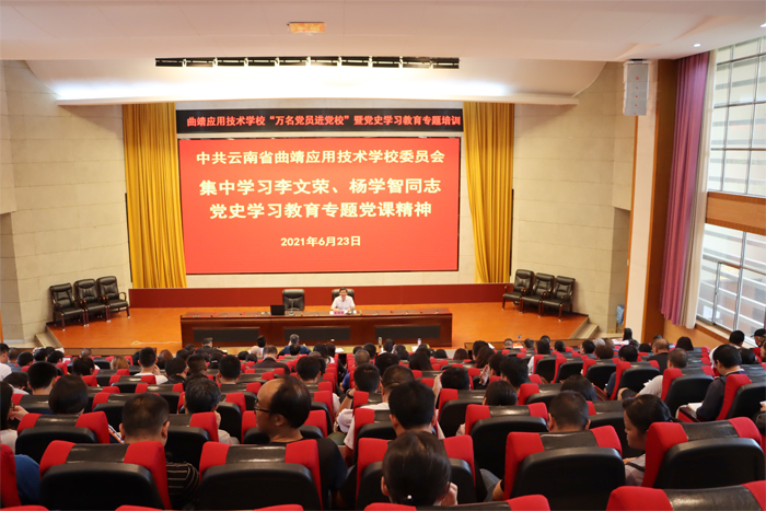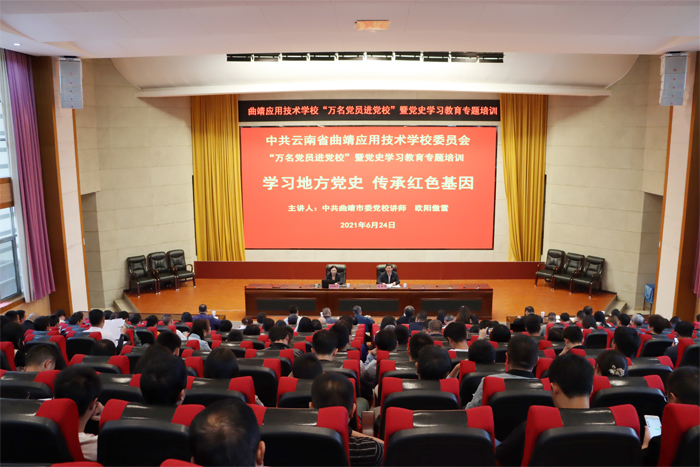 本次培训内容丰富,形式多样,聚焦习近平总书记重要讲话精神和党史学习教育的有关要求,学习了市委书记李文荣同志、教体局局长杨学智党史学习教育专题党课。邀请了市委党校行政学与法学教研室副主任、市委宣传部宣讲团成员、市委党史教育宣讲团成员赵丽娟作了题为《学习百年党史 赓续红色基因》的专题讲座,系统梳理了中国共产党的百年奋斗历程及百年党史的重要启示;曲靖市委党校讲师欧阳傲雪作了题为《学习地方党史 传承红色基因》的专题讲座,围绕曲靖早期党组织的建立和发展、红军长征传播革命火种、开展抗日救亡运动、逐渐成为云南革命的中心区域等方面进行了深入浅出的讲解。
