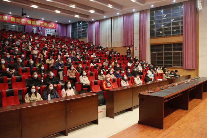 为进一步深入学习习近平新时代中国特色社会主义思想,全面贯彻落实党的十九届六中全会精神,以优异成绩迎接党的二十大召开。按照要求,学校组织全体教职工集中收看了曲靖市“珠源大讲堂”开班式暨第一讲。