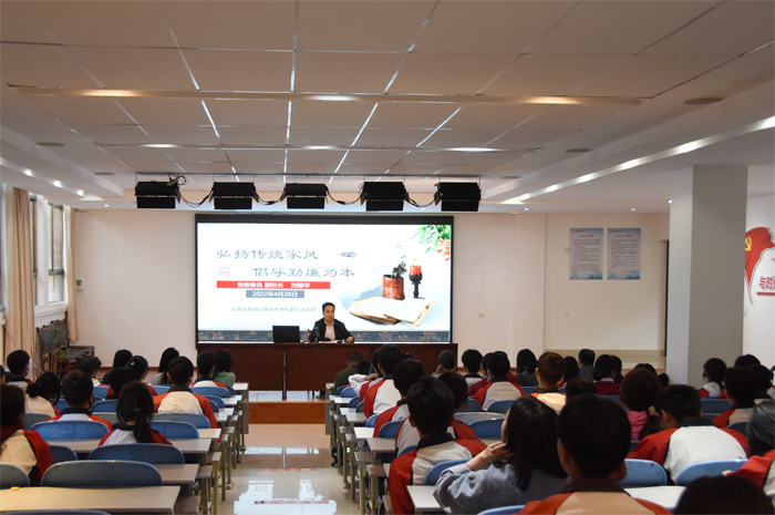 随后,刘副校长以“弘扬传统家风,倡导勤廉为本”主题讲党课。他围绕家风建设、党员干部如何建立勤廉家风、中国传统家风家训欣赏四大部分,对家风作了深入细致分析及讲述,同时还列举了近代家风良好的家族事例,希望大家克服浮躁,理性思考,以更加开阔的眼界和心胸,积极学习,勇于奉献;时时牢记使命,在“正好家风、管好家人、处好家事”上下功夫,真正以良好的家风养成廉洁的作风、促成优良的党风,孕育向善的政风。