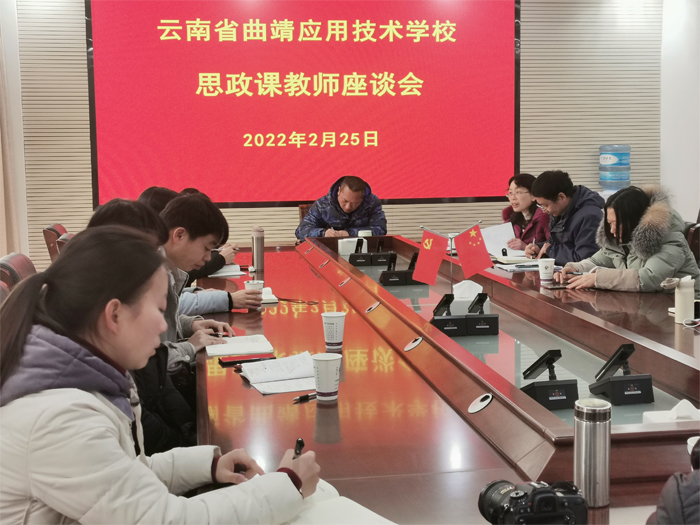 为加强学校思政课教师队伍建设,提高思想政治理论课教育教学质量,推动我校思政课教学工作再上新台阶。2月25日上午,学校组织召开思政课教师座谈会。学校党委委员、常务副校长郭海忠出席座谈会并作重要讲话,相关科室负责人及思政教研组全体教师参会。