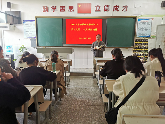 10月18日下午,学校组织开展思政专题教研活动,活动围绕“党的二十大精神进课堂”进行集体学习研究,统一思想认识,让党的二十大精神进教案、进课堂。